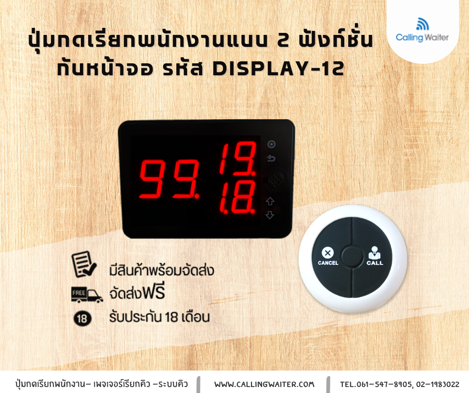 สินค้าตัวปุ่มกด (Wireless Calling System) จะวางทุกโต๊ะอาหาร เมื่อลูกค้ามีความต้องการ สามารถกดปุ่มเพื่อขอรับบริการ เมื่อกดปุ่มแล้ว ข้อมูลจะส่งไปที่เครื่องรับ ได้แก่ หน้าจอ Display หรือนาฬิกา ทำให้รู้ว่าลูกค้าโต๊ะไหนเรียก และสามารถลำดับคิวก่อนหลังได้