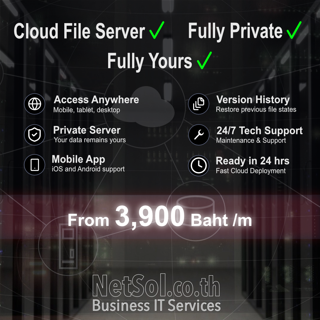 Cloud Backup คือบริการสำรองข้อมูลบน Private Cloud (ระบบคลาวด์ส่วนตัวในองค์กร) ที่ออกแบบมาเพื่อธุรกิจโดยเฉพาะ ให้คุณมั่นใจได้ว่าไฟล์สำคัญจะปลอดภัย เข้าถึงได้ทุกที่ และควบคุมได้ 100%
