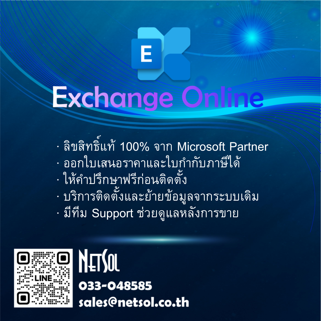 Exchange Online คือบริการอีเมลสำหรับธุรกิจจาก Microsoft ที่มาพร้อมฟีเจอร์ระดับมืออาชีพ ช่วยให้การติดต่อสื่อสารภายในองค์กรเป็นเรื่องง่าย ปลอดภัย และมีประสิทธิภาพสูงสุด